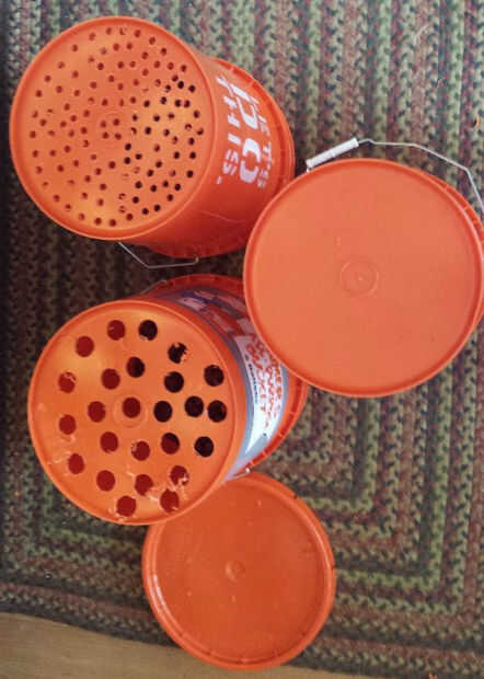 Apilar los cubos, por lo que es sin los agujeros en la parte inferior seguido por orificios de pequeño y luego grande.