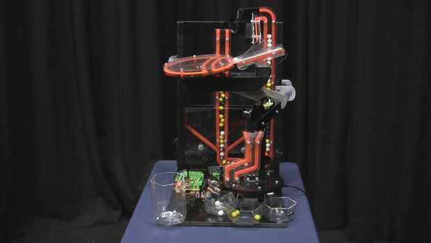 Nuestros fabricantes de Maui MakerSpace (sí en la isla de Maui, HI) tiene este vórtice de mármol (realmente una demostración de cómo una gravedad funciona bien). Mármoles se ruedan alrededor y luego caer en la gravedad bien. Esto demuestra cómo plane