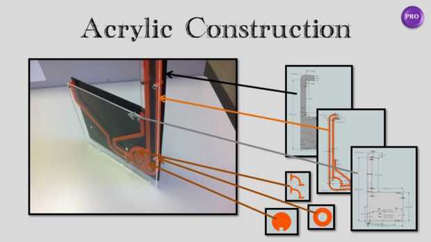 El mecanismo de elevación se compone de tres hojas de acrílico separadas por arandelas de acrílico.