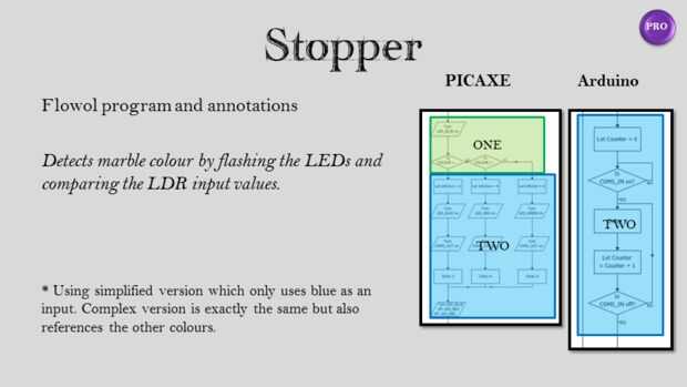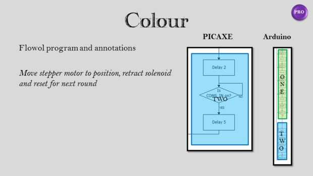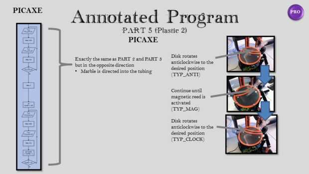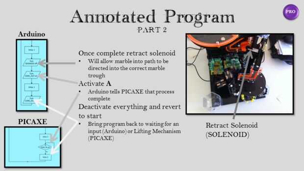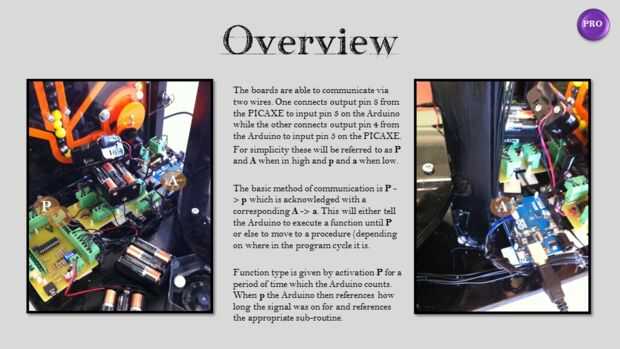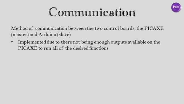 Puesto que fueron utilizados dos microcontroladores (PICAXE y Arduino), dos cables funcionan entre las juntas para permitir la comunicación. Esto puede evitarse mediante el uso de un tablero de control más grande.