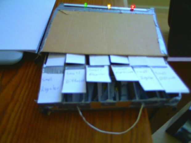 este instructable le mostrará cómo hacer un soporte led que se clasifica en ranuras por color, tamaño, y si se difunde o no. Esto es muy útil para los LEDs que son claras, pero iluminan de un color diferente como naranja. Puede voltear un interruptor en la parte posterior de la caja para ver qué color de los LEDs se clasifican en y donde están en el.