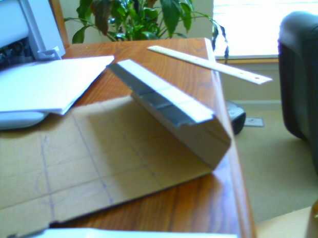 A continuación te queremos hacer pliegues que harán una cubierta para los cables y cosas eléctricas. Mida 1 1/4" tres veces, ver figura 3 para ver de que manera de trazar las líneas. Hacer una línea todos los paso y pliegue en cada línea en la misma dirección. Después dobla debe parecerse a la imagen 4.