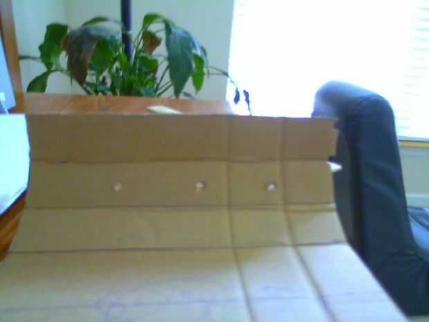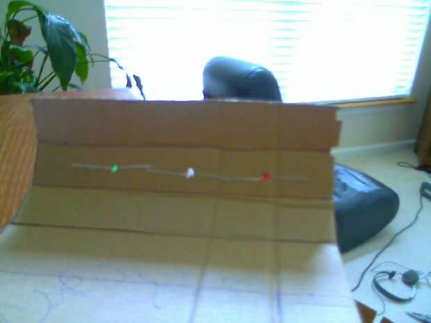 Luego cortar un agujero en la aleta bajo que con los LEDs lo suficientemente grandes como para caber la parte redonda del interruptor a través de. Después simplemente ponga la pieza redonda. Cinta la parte posterior de la cartulina y deje las partes metálicas expuestas.
