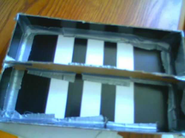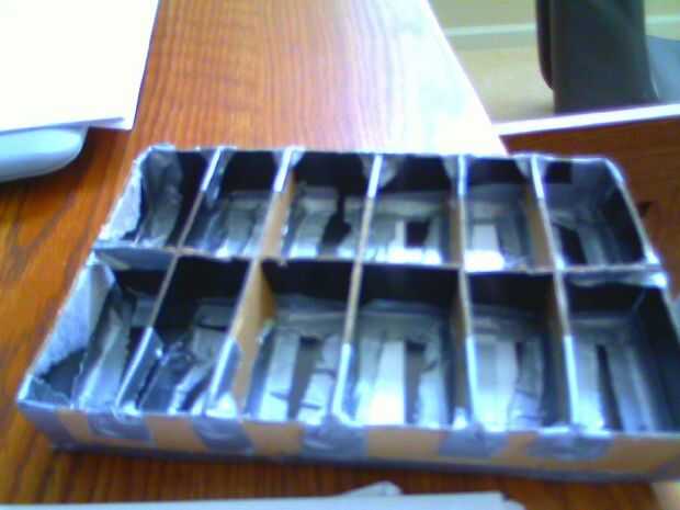 Ahora tenemos que poner los divisores en separa los LEDs. Esta parte todo dependerá de cómo muchos tamaños y colores tienes. Pero en mi caso tengo 4 secciones por color: regular grande, grande pequeña difusa, de regular, pequeño difundido. Por lo que tengo que hacer + para mis separadores. Primero pongo una pieza por todo el cuadro. Entonces dependiendo de cuántos diodos LED han dividirlo en las secciones de diferente color. Tengo 3 colores diferentes por lo que tengo que poner en 2 divisores. Entonces tenemos que dividir en difusa y regular. Sólo se dividen las nuevas secciones que acaba de hacer en dos.
