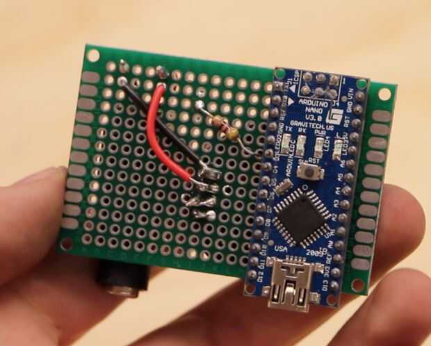 5. Entonces es hora de añadir el condensador de 1000uF. El cable negativo está conectado al adaptador de la energía negativa y positivo al borne positivo. Si te fijas bien en el condensador, usted notará una flecha a lo largo de la cara. La fl echa señala de negativo al positivo.
