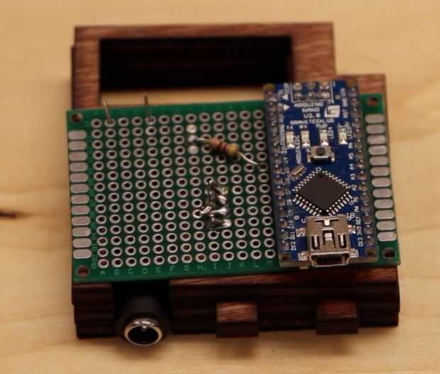 2. Montar las 3 capas de la caja de circuito para ayudar a alinear los cables en el protoboard.