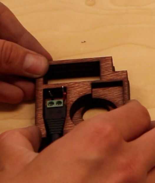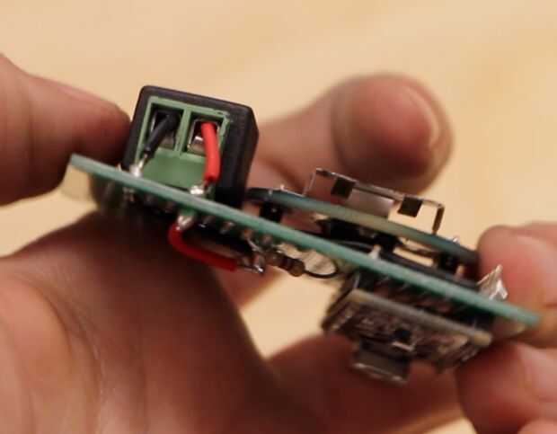 4. Luego soldar un cable de Vcc de ChronoDot al positivo de alimentación terminal y el GND de la ChronoDot al borne negativo.
