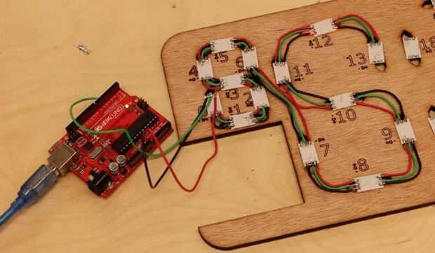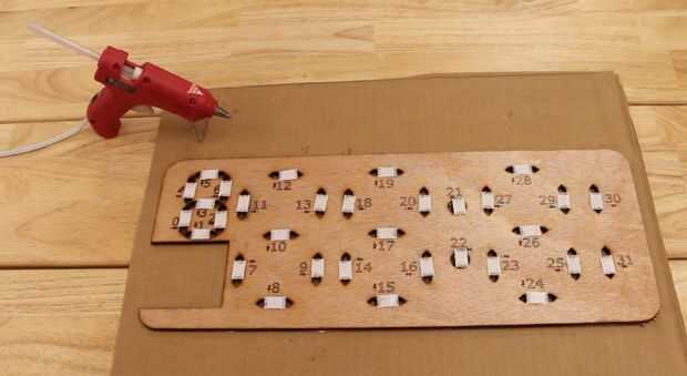1. La capa de la Asamblea de Neopixel tiene números grabados en la madera. Los números indican el orden en que los Neopixels deben ser conectados juntos con el fin de coincidir con el código.