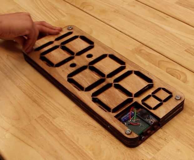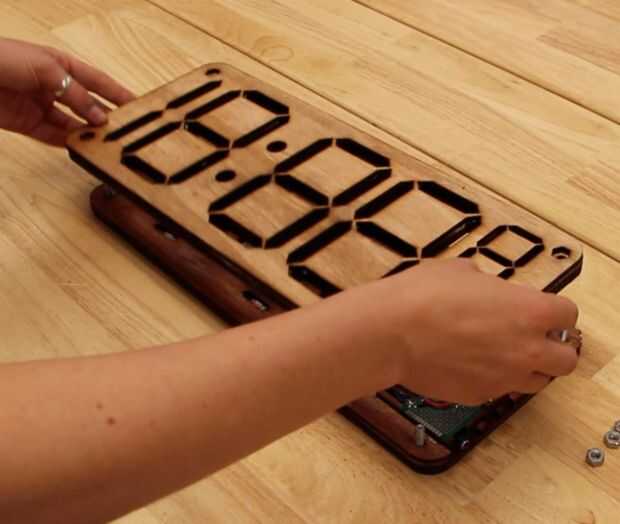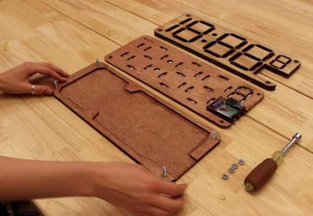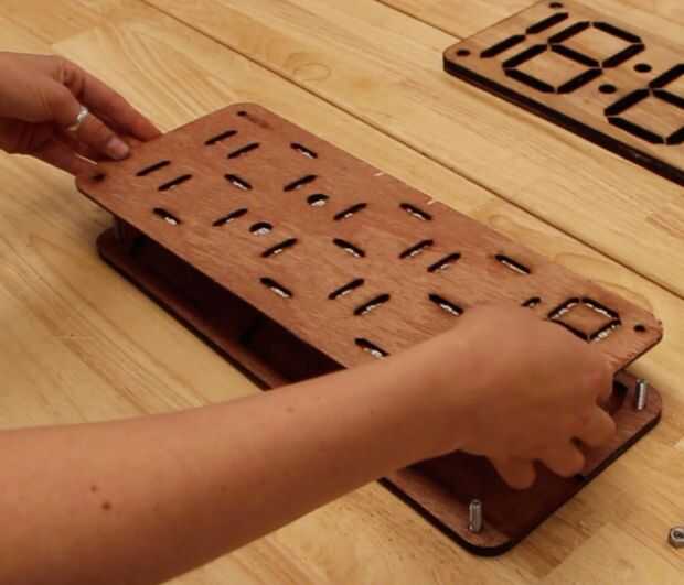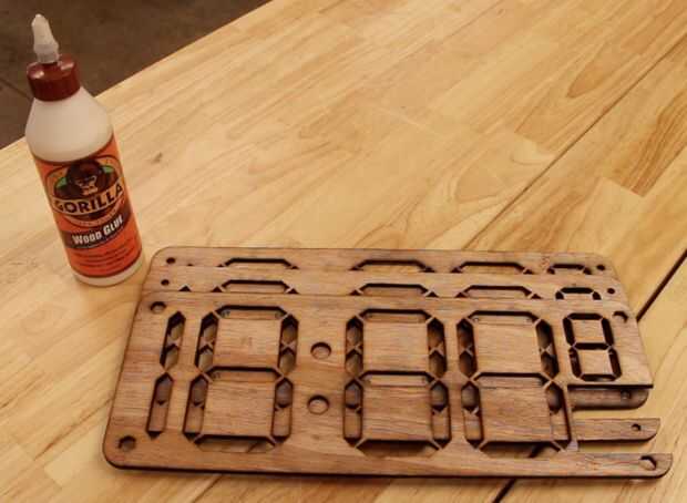 Cuando el pegamento esté seco, la capa superior de madera y el acrílico pueden resbalar en y fuera del reloj exponiendo el Arduino y el circuito si es necesario.