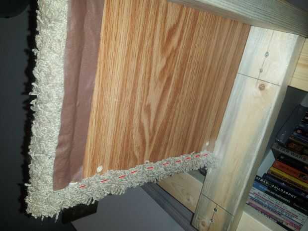 La ventaja de alfombras los niveles de esta manera, en lugar de utilizar pegamento, es que puede reemplazar la alfombra bastante fácilmente. Si kitty hace un lío, siempre puede rasgar la cinta y sacar las grapas.