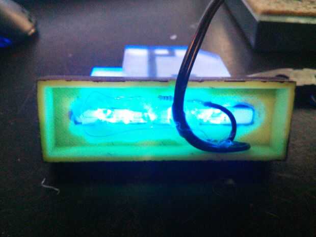 Cuando suelde el LED ya super pegado al acrílico notará pequeñas grietas se forman si el acrílico se obtiene a caliente.