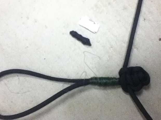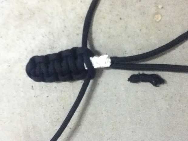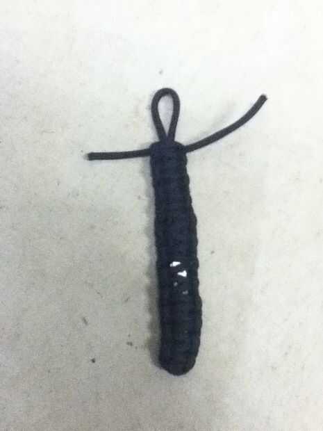 Luego envolver la línea de pesca alrededor de la media parcord luego continuar el abrigo en los ganchos y los pesos en el centro y terminar todo