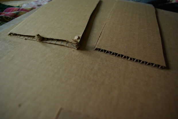 La 'clave' para que Runaway Brain objetos de cartón es la Junta de escuadra. Esto es preferible a la junta plana, especialmente en el caso de cartón porque la Junta de escuadra no muestran el corrugado interior. Ver la corrugación es lo que hace realmente cosas de cartón parecen cartón (barato mirando). Para ello, cada corte debe ser hecho con la hoja a 45° o menos. Esto es cuando se convierte en muy importante que su maquinilla de afeitar es totalmente nuevo y muy fuerte.