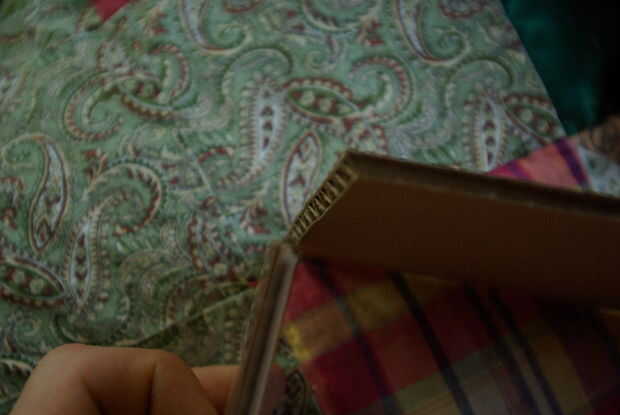 Cortando de esta manera, se creará un pedazo de cartón con un lado más grande y ligeramente más pequeño. El lado más grande siempre será fuera de su objeto así que recuerde a corte 45° desde el lado correcto.
