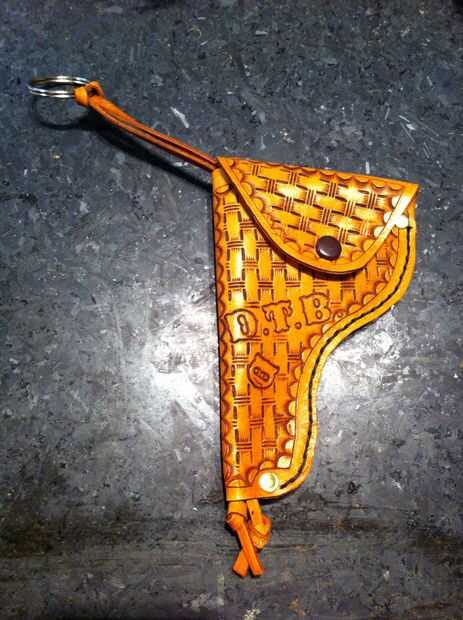 En primer lugar quería que se vea como una funda de pistola, sólo más pequeño, que pero lo suficientemente grande como para poseer las llaves normalmente llevaba. Por suerte él no lleve una masa de claves como lo hago.