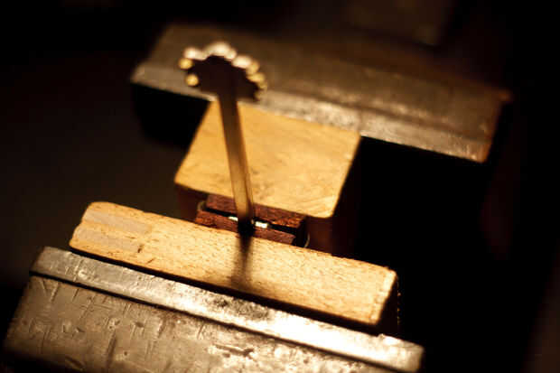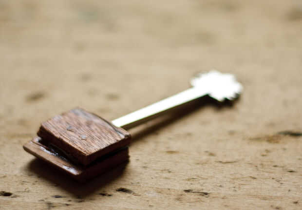La segunda imagen muestra la circunstancia en la que ya ha decidido mantener el metal todo contorno de la cabeza de llave. En este caso la presión para unir las piezas no es muy alta, puede usar un tornillo de banco pequeño o una pinza y en vez de las placas de metal, dos bloques de madera son buenas. Usar un pegamento fuerte para el metal y recuerde limpiar cuidadosamente y desengrasar las superficies antes de aplicar pegamento sobre ellos.