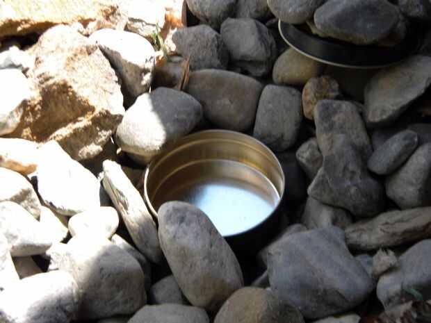Después de cavar el agujero Asegúrese de que la lata es un poco bajo las rocas
