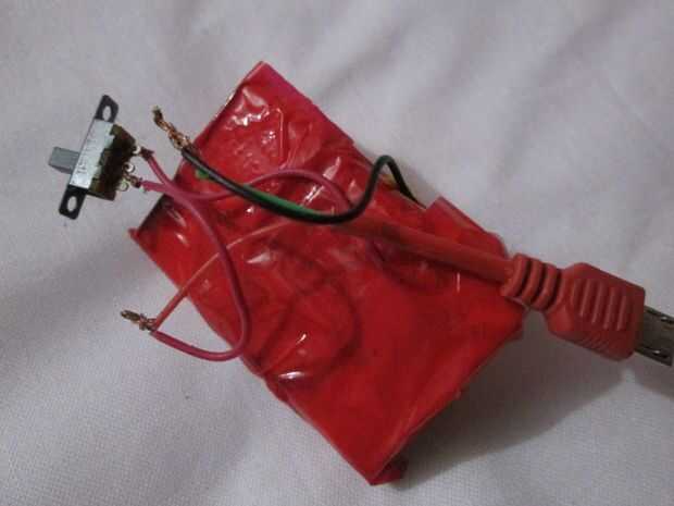 El conector que consistirá en dos - línea roja (línea '+') y otra línea ('-' línea). Ahora, la línea positiva del Banco de energía anteriores se unirá con el conector que lleva la línea de positivo y negativo línea de banco de potencia con línea de negativo del conector.