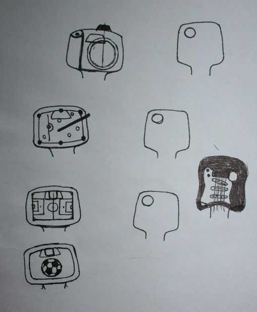 Decidí hacer una cámara, un balón de fútbol campo de fútbol y una guitarra (basado en una forma cuadrada).