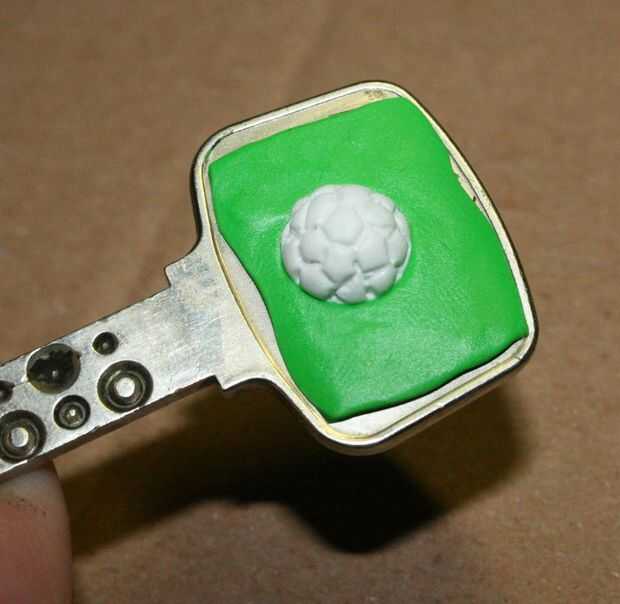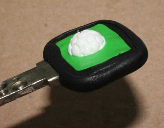 1 - lugar una capa de arcilla verde en un lado de la tecla. Este será el campo de fútbol.