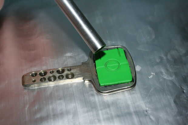 8 - finalmente, abrir el agujero para el anillo con el pasador.