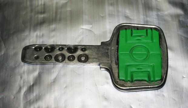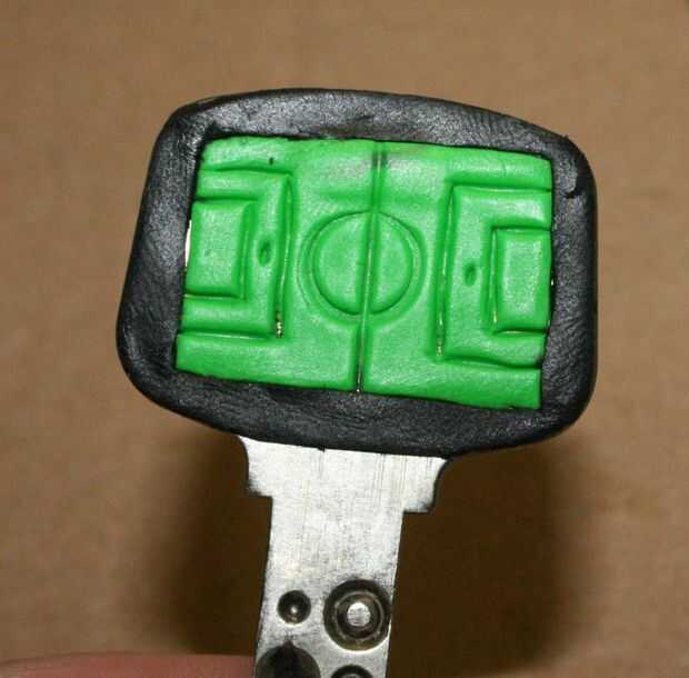 7 - rellenar el contorno de ambos lados de la llave con barro negro.