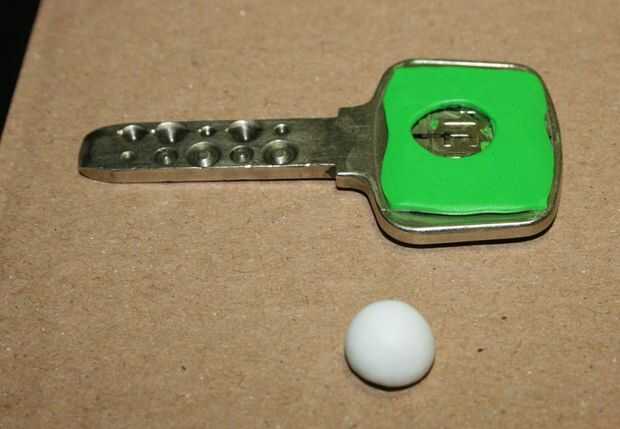 4 - en el otro lado, Coloque una capa de arcilla verde y marca un círculo con el cuerpo del bisturí. Retire el círculo y dejar un agujero donde se colocará la bola.