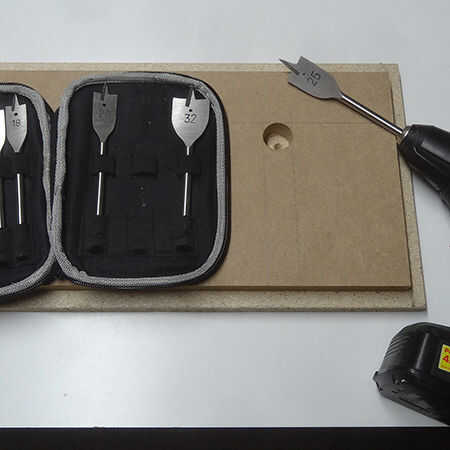 2. en la base de cada ranura un taladro con una broca de 25mm. Si usas un taco de tamaño diferente - utilice el correspondiente tamaño de punta de pala.