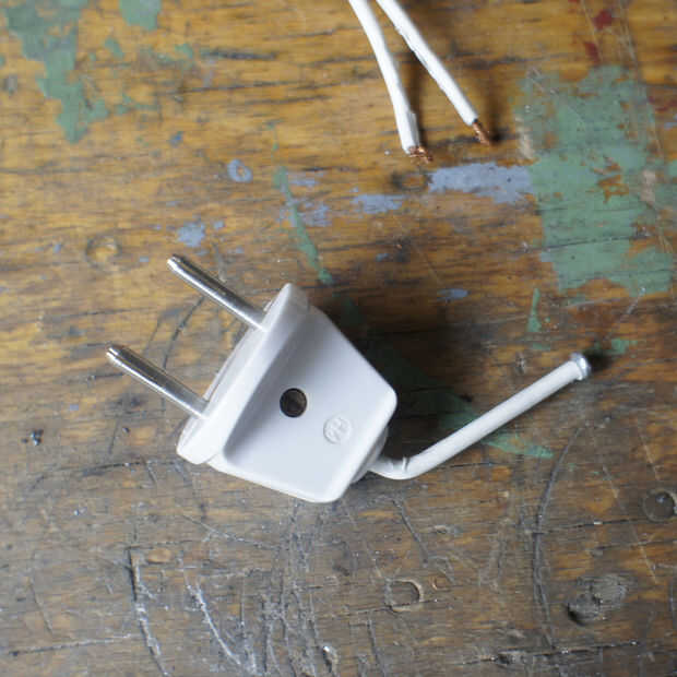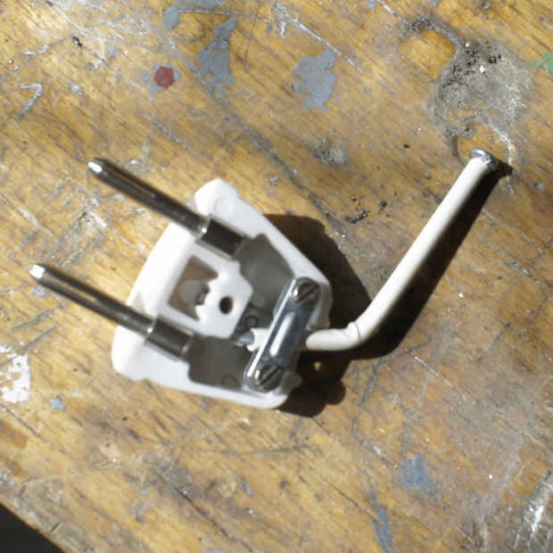 Coloque el clavo en la liberación de la tensión del enchufe. Asegúrese de que el clavo no puede y no será capaz de llegar a una de las patas del enchufe. No queremos que cualquiera pueda ser electrocutado cuando alguien accidentalmente una de las clavijas del enchufe en una toma real, viva,!