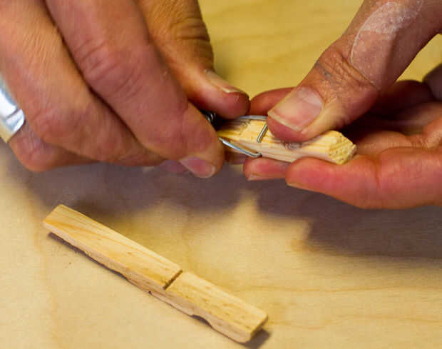 en primer lugar, necesita una clavija de ropa,ArchivoGoma/pegamentoY un cuchillo.Paso 1: La corte Tenga cuidado de no cortarse.Así que dibujar las líneas que se muestra en la imagen, asegúrese de que el corte superior es recto.También, asegúrese de q