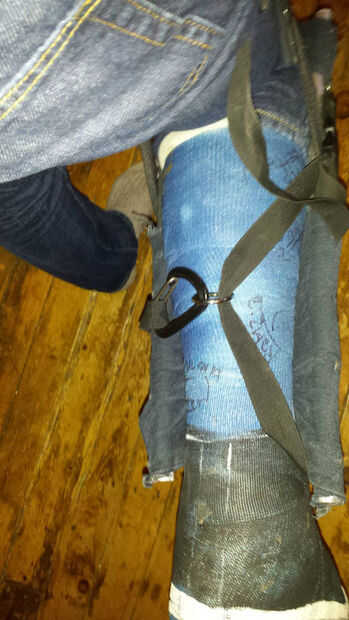 Para el elenco até un mosquetón en el interior del bastidor del molde con un lazo de cinta. Se deslizó un anillo en D de la correa a través de la beener y sujeta la pinza en el exterior de la ayuda de la fundición. Luego sólo sujeta por la correa en un lazo muy grande, había doblado sobre mi molde y al anillo en D de la beener. Lo agradable y apretado ceñida a. Perdón por la calidad de la imagen - fue por mi cuenta.