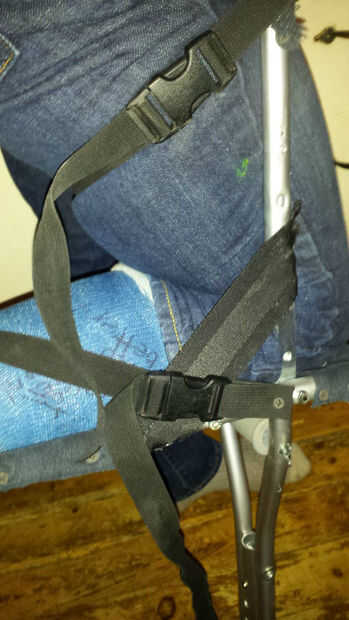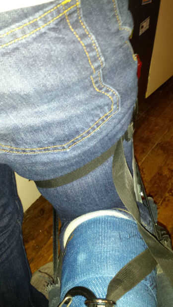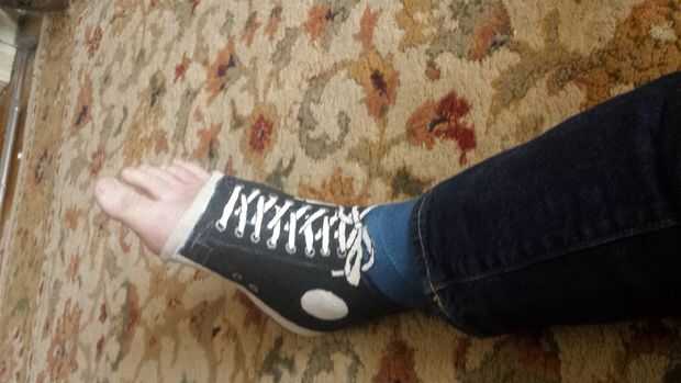 Antes de llegar este conjunto y en uso, estaba en muletas. Pasaba un grupo de niños mirando duro, pero les ha gustado mi elenco suficiente para detenerme para un cuadro. Así que aquí está una imagen. ¿Quieres un instructivo sobre cómo pintar encima de un molde para parecerse a una Converse All-Star? Olvidé de tomar fotos.
