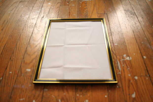 Con cuidado sacar el vidrio y cubrir el respaldo con un pedazo de tela o ropa. Usé una servilleta de lino blanco porque saltará el marco negro se utiliza contra el blanco.
