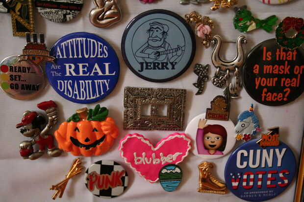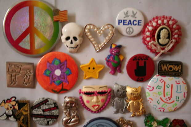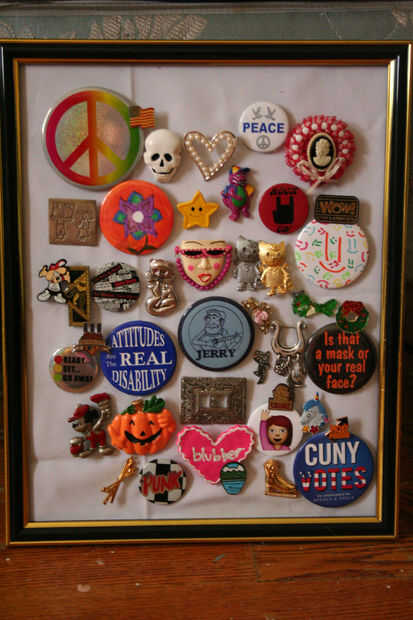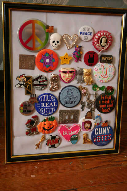 Ahora, está listo para la exhibición! Este arte de la pared tiene algunos 3D efecto y un montón de colores brillantes! Voy a añadir más botones y pins más tarde. Mientras tanto, Echale un vistazo esta impresionante galería de algunos de mis favoritos pins y botones a lo largo de mi infancia!