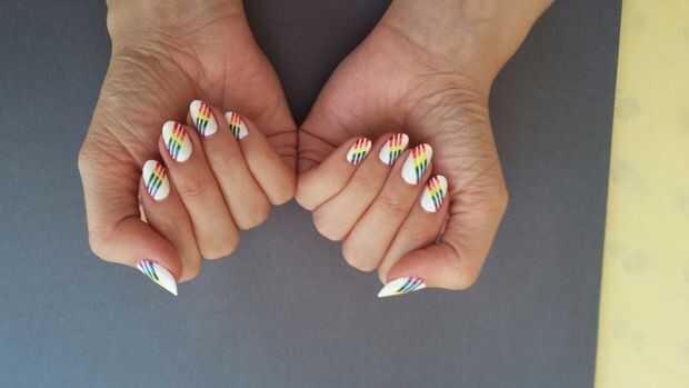 En honor a cambios recientes en los Estados Unidos, aquí son los arco iris banda clavos para demostrar su orgullo! Son un poco lentos pero el diseño podría utilizarse para sólo un clavo de acento para reducir el trabajo.