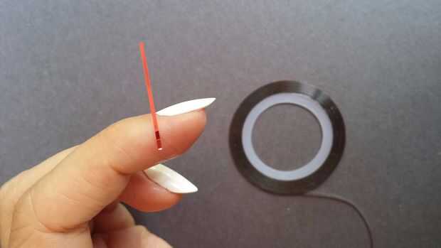 Se necesita 2 tiras de cinta de rayas (o cinta de pintor muy finamente cortada) y dos pedazos de cinta de pintor por cada clavo. En caso de estar muy mal en matemáticas, es decir 20 trozos de cinta de rayas y 20 piezas de cinta de pintor para un conjunto completo de uñas. Todos deben ser aproximadamente una pulgada de largo. Me gusta cortar cinta de pintor en mitad de manera que es menos engorroso y no perder tanto.