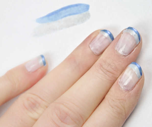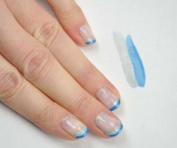 - Pintar la punta de tu uña con el color más oscuro. Puede usar el encendedor en el exterior si usted quiere, pero prefiere oscuro en el exterior. Déjelo secar. (ayuda a dab algunos esmalte de uñas en un pedazo de papel y usar eso para sumergir su cepillo de uñas)
