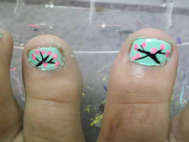 como pintar flores de cerezo japonés en sus uñas para darles un aspecto más emocionante y exótico.Nota: Es útil tener a mano unas fotos de referencia. Utilice un motor de búsqueda para encontrar varios cuadros de flores de cerezo japonés. Esto hará m