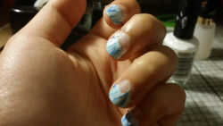 Ahora sacar tu esmalte de uñas blanco y pincel barniz de su cutícula, por lo que sólo las puntas de las uñas tienen pintura en ellos. Lo importante es que está bien si tienes pintura de la cinta. La cinta actúa como una barrera y está bien si la pintura está en él. Después de la pintura semi seca, lo mejor es quitar la cinta seca completamente. Esta manera, la pintura no pele con la cinta al retirar.