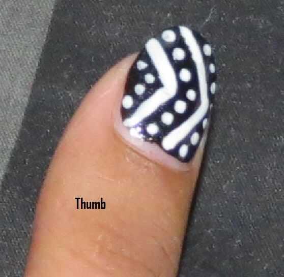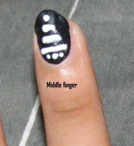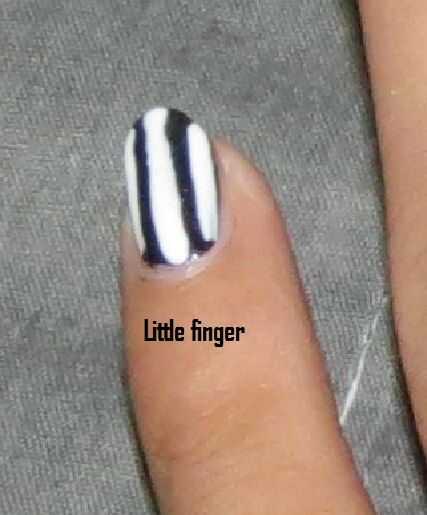 su tooties de preparación para el fracaso de tirón de temporada con algunas uñas de moda. Este diseño se compone de: 1 la capa bold stripes, forrado con bordes negros y remata con algunas pinceladas aquí y allá.Paso 1: sólido! Hacer algunas rayas sól