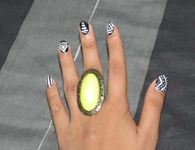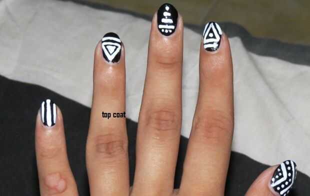 su tooties de preparación para el fracaso de tirón de temporada con algunas uñas de moda. Este diseño se compone de: 1 la capa bold stripes, forrado con bordes negros y remata con algunas pinceladas aquí y allá.Paso 1: sólido! Hacer algunas rayas sól