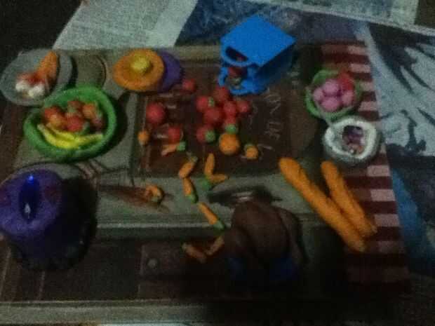 Huevos: aplanados de arcilla blanca y una bola de amarillo aplanado un poco