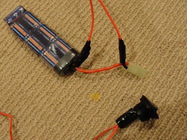 los otros extremos del cable largo deben conectar a un interruptor, preferiblemente una que corta al quitar el dedo del interruptor a diferencia del interruptor que he usado que tienes que apagar manualmente. entonces todo el alambre abierto con cinta aislante cinta se muestra a continuación. por cierto, utilicé alambre mucho más a continuación, se muestra en la foto, se cortó justo fuera de la foto.
