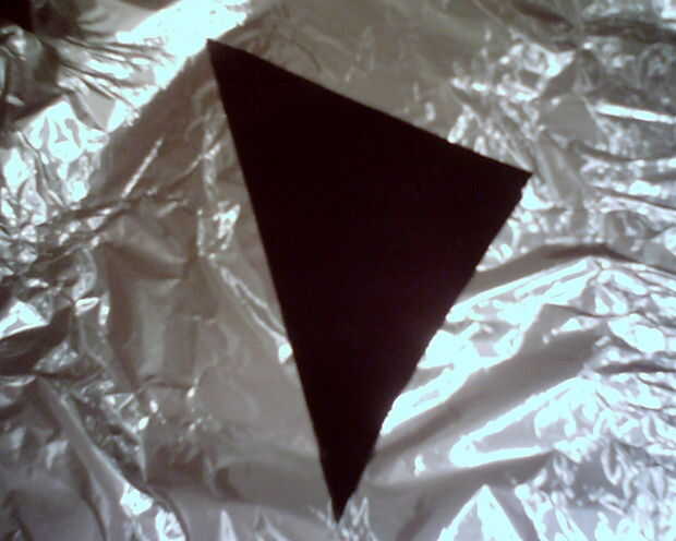 Cinta a la parte posterior en la misma orientación que la trianglees en el frente sade. pero asegúrese de que no se toquen los puntos centrales.