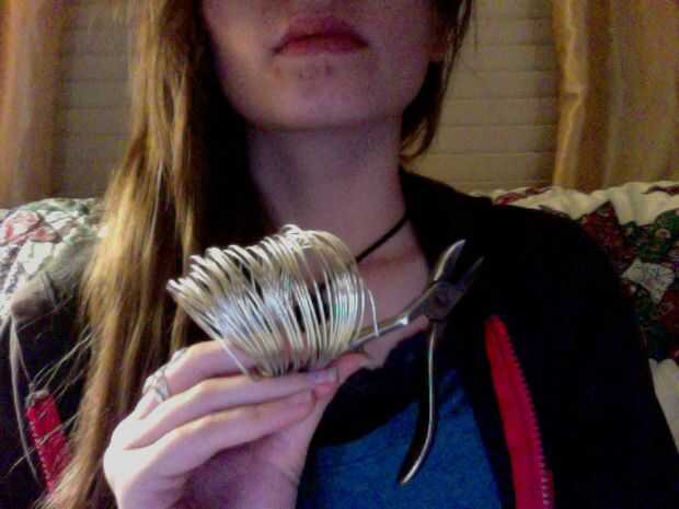 No hay muchas fuentes que usted necesita. Todo lo que necesitaba era cable calibre 18, cortadores de alambre pequeño, una pequeña longitud de cadena y un pendiente (esto es lo que mantendrá la cadena atada a su lóbulo de la oreja).