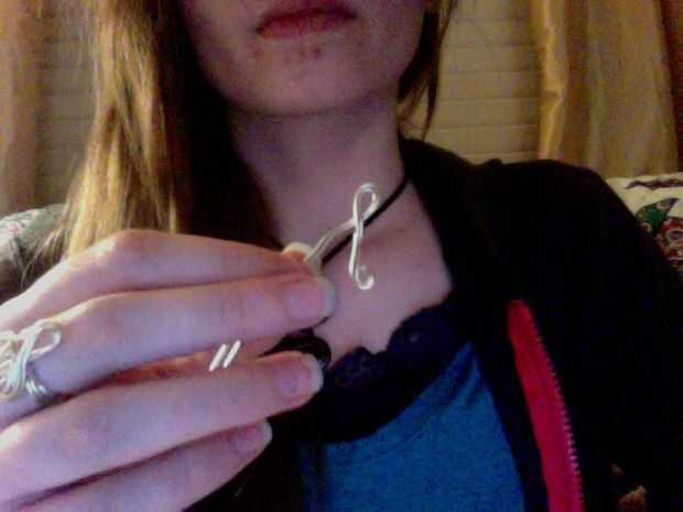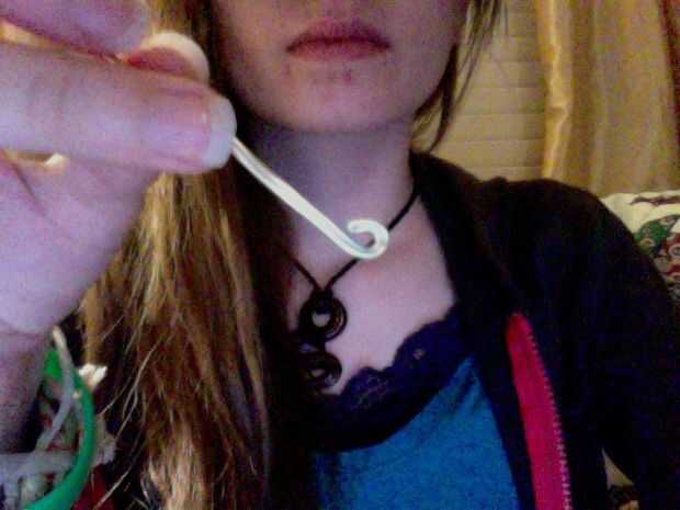 Tomar algunas agujas pinzas de punta (sólo usé mis cortadores de alambre pequeño porque no tengo pinzas de punta de aguja en el momento) y hacer un pequeño bucle en la parte inferior. Luego hacer un lazo más grande en la parte superior, pero no lo hacen demasiado grande.
