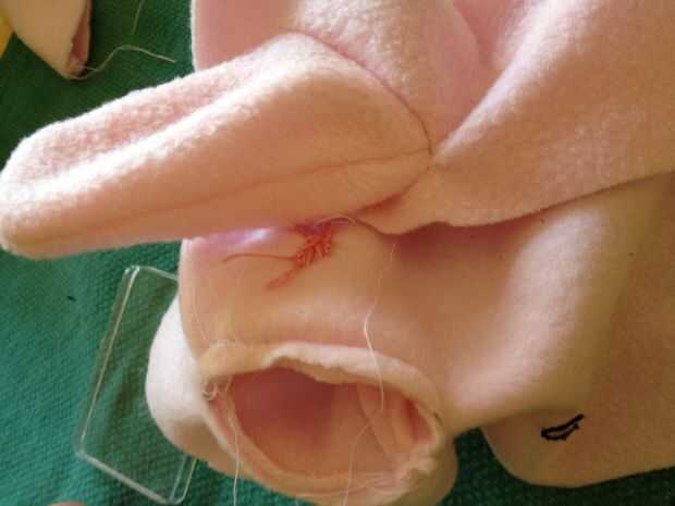 Prender el interior de los brazos en el interior del cuerpo así que hay un agujero que permite rellenar los brazos. Entonces ya sea a máquina o a mano palillo alrededor de los bordes.