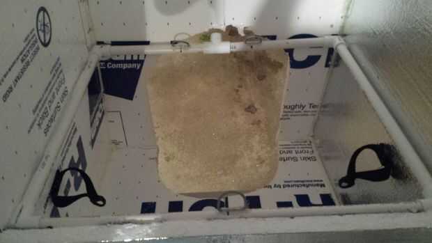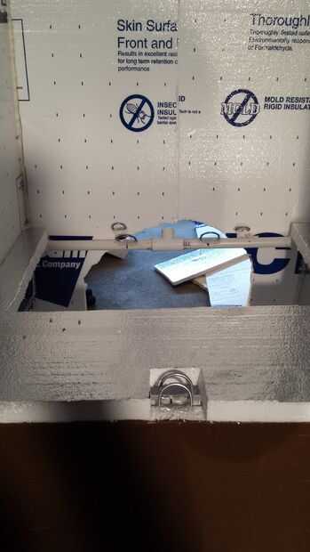 Así que el siguiente paso fue hacer la mitad de la plataforma de baño, corte un agujero para que poder entrar junto con un sistema de soporte de artilugios para el arnés para conectarse. Fui con sólo pegar tubos de PVC y conectores alrededor de él. Si vas a usar anillos en D, sugiero poner el tubo a través de ellos antes de que pegue el tubo en la espuma de poliestireno, en vez de pegar a la tubería sí mismo, para darle mejor soporte (cometí el error de pegarles y que salen). También asegúrese de que obtener un conector de 3 vías para el dummy como se puede ver en las fotos!