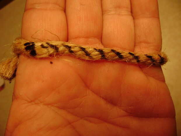 cuerda o cordón... mantener el agujero tan pequeño como sea posible.