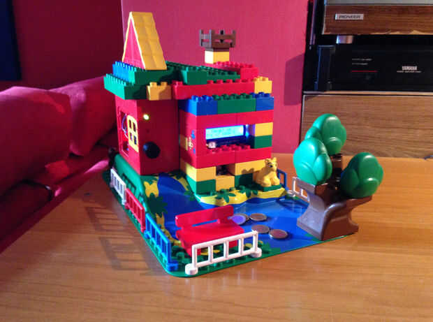 Para el recinto he usado bloques de Lego Duplo y el mecanismo es proporcionado por una parte de reproductor de DVD.
